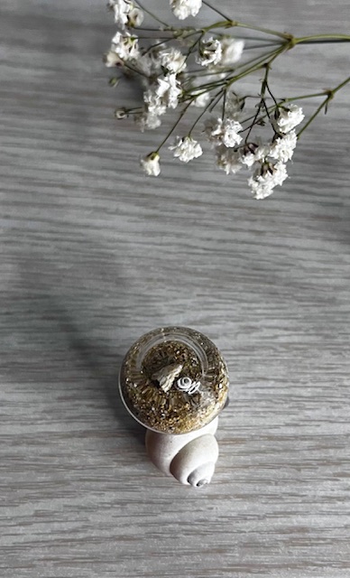 *Les coquillages intégrés dans chaque bulle peuvent varier selon le ramassage, les disponibilités et leur taille, afin de s’adapter au volume de la sphère en verre, rendant chaque bijou unique