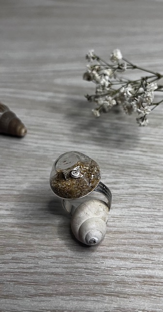 Bague "Bulle de Sable" Dôme - Bijou artisanal en verre et sable naturelBague « Bulle de Sable » Dôme – Bijou artisanal en verre et sable naturel