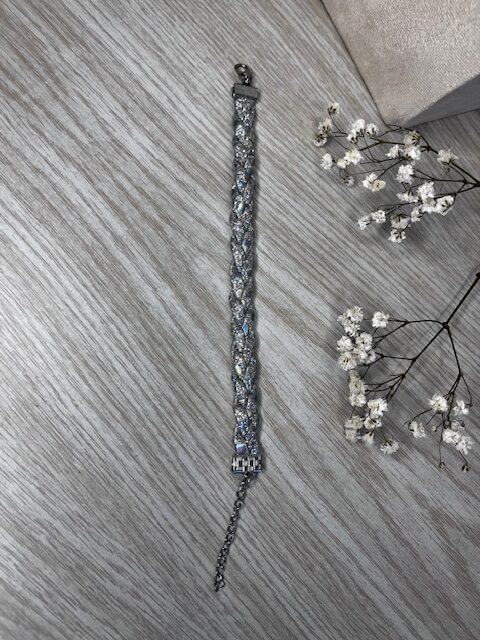Bracelet Tressé - Similicuir pailleté argentéBracelet Tressé – Similicuir pailleté argenté