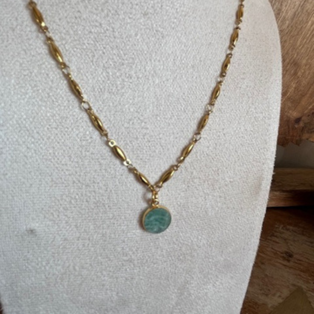 Collier AMAZONITE doré – Pierre naturelle & énergétique
