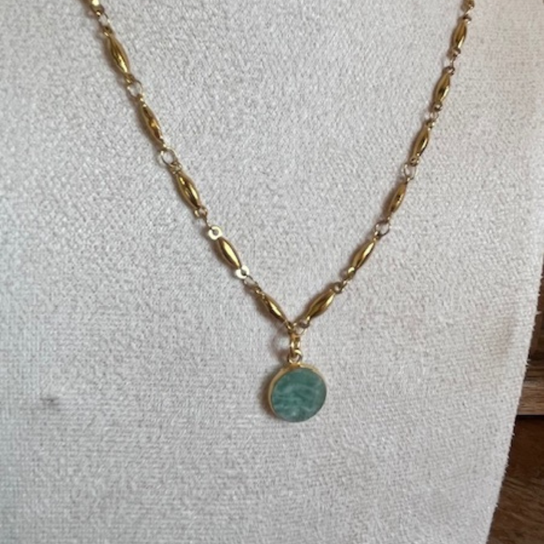 Collier AMAZONITE doré - Pierre naturelle & énergétiqueCollier AMAZONITE doré – Pierre naturelle & énergétique