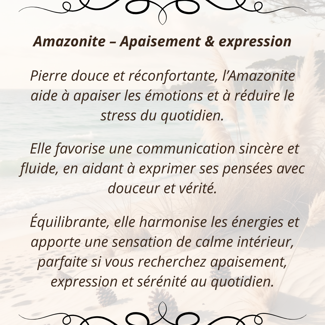 Véritable bijou de sens, ce collier AMAZONITE apporte apaisement, joie et équilibre émotionnel