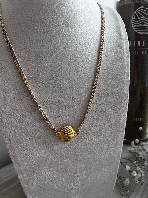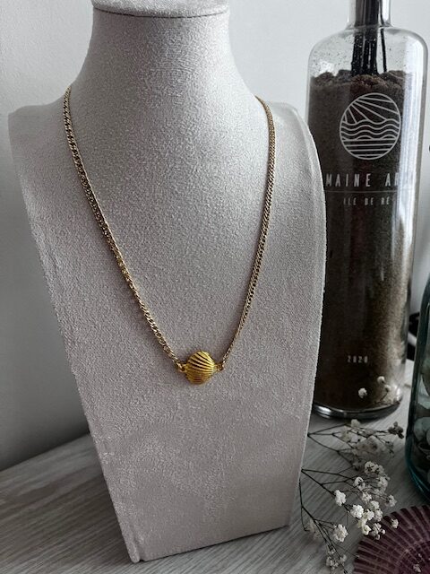 Ce collier coquillage Saint-Jacques s’inspire de l’univers marin et de l’élégance naturelle du littoral.