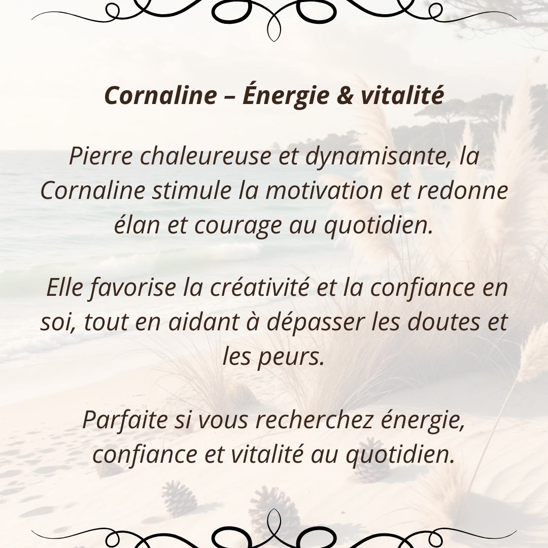 Véritable bijou de sens, ce collier CORNALINE stimule l’énergie, la motivation et la créativité