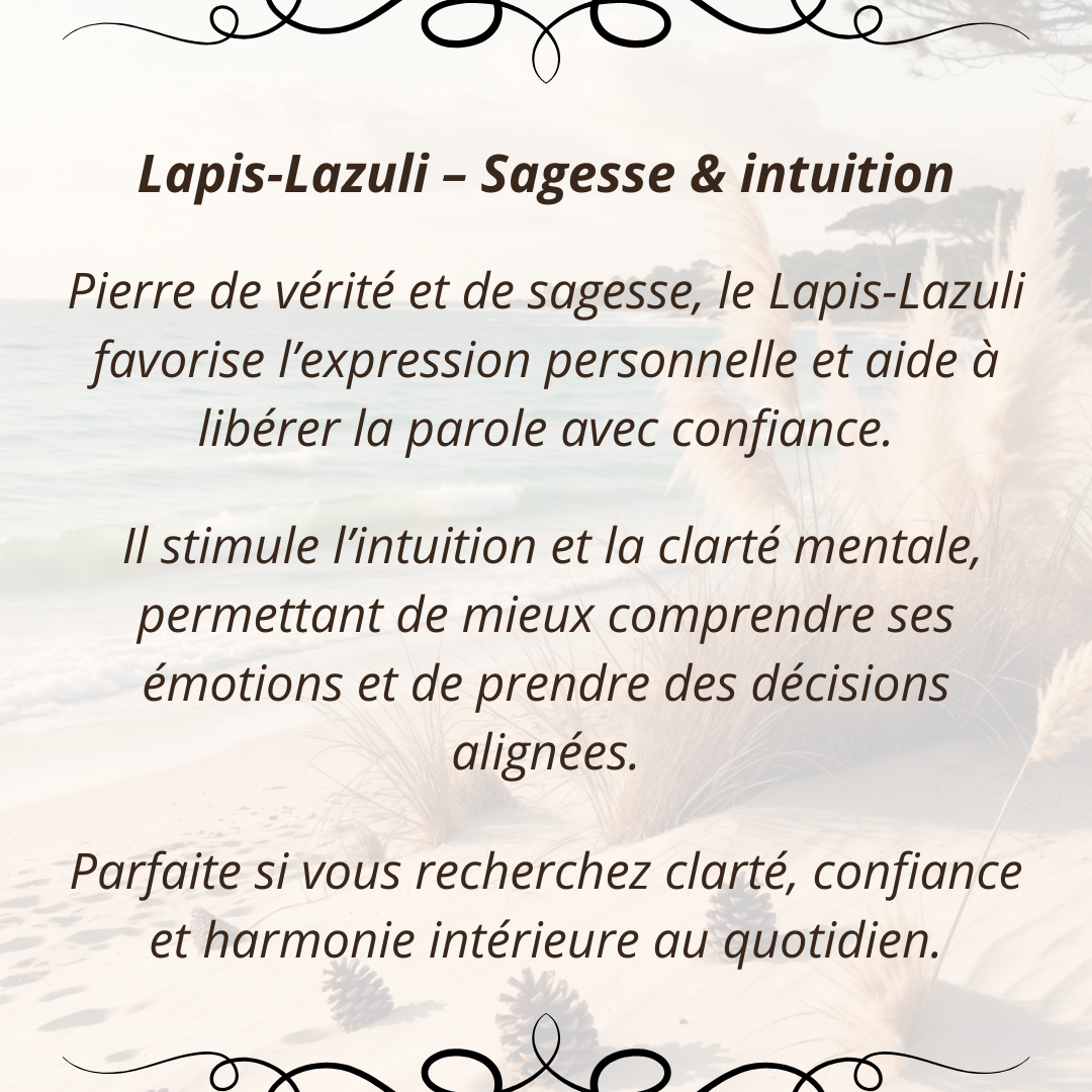 Véritable bijou de sens, ce collier LAPIS LAZULI saura développer vos sens pour la communication, l’intuition et la sagesse