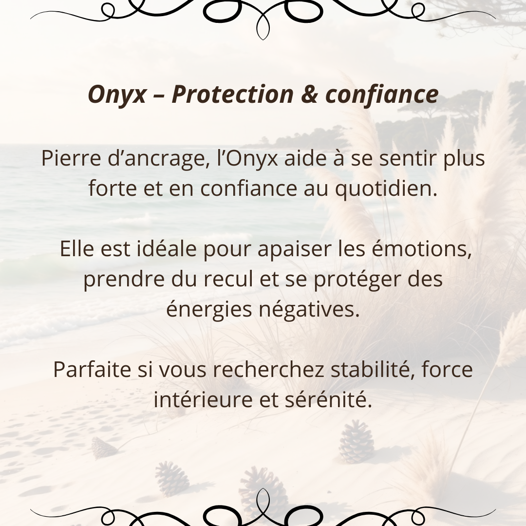 Véritable bijou de sens, ce collier ONYX vous apportera force intérieure, stabilité et confiance en soi.