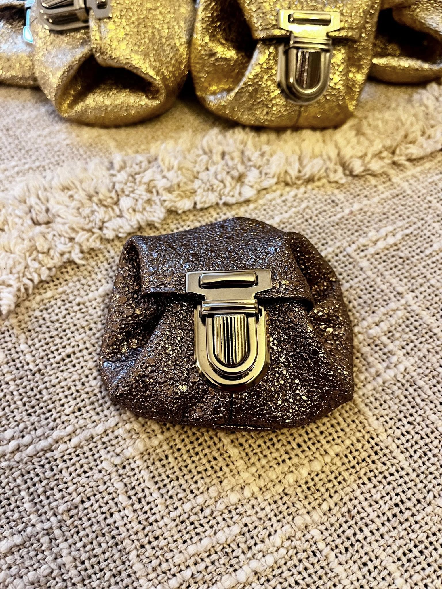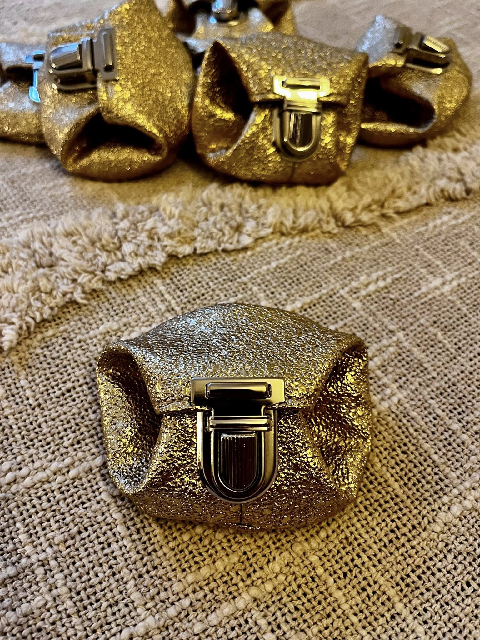 Entièrement cousu main et doublé pour plus de solidité, il est disponible en différentes variations : similicuir brillant ou tissu fantaisie, selon vos envies. Son format compact (environ 7 à 8 cm) en fait l’allié idéal pour ranger votre monnaie, vos bijoux ou vos petits accessoires du quotidien.