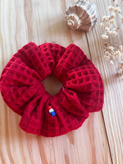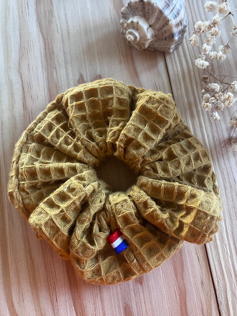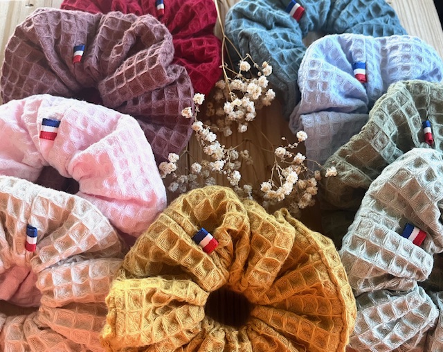 Les Scrunchies: Apportez douceur et style à vos coiffures avec ces scrunchies – chouchous en tissu nid d’abeille fait main. Chaque pièce est réalisée artisanalement, offrant une qualité et une résistance optimales, marquée du logo Made in France.